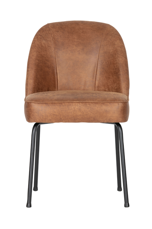 Snygg och bekväm matsalsstol – Mjuka, behagliga former – Återvunnet läder (70% läder, 30% polyester) – H 83 cm x B 50 cm x D 57 cm Vogue matsalsstol ingår i en kollektion från det nederländska märket BePureHome. Matsalsstolen är superbekväm och det mjuka tyget och de behagligt rundade formerna gör denna eleganta stol till ett dekorativt inslag i en modern inredning. Den smala designen gör att stolen passar bra med de flesta inredningsstilar. Material Återvunnet läder ger ett unikt utseende och eftersom rester används är det ett hållbart val! Det återvunna lädret består av 70% fibrer från äkta läder och 30% från polyester. Materialet består av två delar: ett undre lager av återvunnet äkta läder, vilket ger det naturliga utseendet. Det övre lagret är ett polyesteröverdrag som skyddar lädret och förhindrar ojämnheter. Detta gör det till ett tåligt kombinationstyg. Mikrofibermaterialet är stickat av mycket tunna syntetfibrer. Denna produktionsteknik ger ett stabilt material med mjuk känsla. Tyget har hög färgbeständighet. Med tiden kommer tyget och dess struktur visa sina naturliga egenskaper mer, men detta förändrar inte hållbarheten eller kvaliteten. Matsalsstolens stomme är tillverkad av matt, svart, pulverlackerad metall. Sitsens ram är tillverkad av en kombination av spånskiva och plywood. Sitsen innehåller elastiska remmar och skum T3542 som ger en något fast sits som håller i timmar. Ryggstödet är fyllt med skum T2120. Mått Vogue matsalsstol har en total höjd på 83 cm, en total bredd på 50 cm och ett djup på 57 cm. Sitthöjden är 50 cm och sittdjupet 45 cm. Sittbredden är 50 cm. De fyra benen har alla en höjd på 40 cm och diameter 2 cm. Skötsel Rengör detta kombinationstyg varje vecka med en fuktig trasa. Fläckar? Använd en neutral tvål för att ta bort fläckar och klappa torrt med en fuktig trasa. Gnugga absolut inte. Gnuggning kan ge fläckar på tyget. Ställ inte möbeln i direkt solljus, det kan orsaka ljusa fläckar. Missfärgat återvunnet läder kommer aldrig att återfå sin ursprungliga färg. Återvunnet läder behöver inte impregneras och det ska inte behandlas med läderfett. Leverans Matsalsstolen levereras i par, i ett paket. Benen är enkla att montera själv med hjälp av medföljande monteringsanvisning. För att skydda hårda golv, sätt möbeltassar av filt under benen (2 cm i diameter). Detta förhindrar repor.