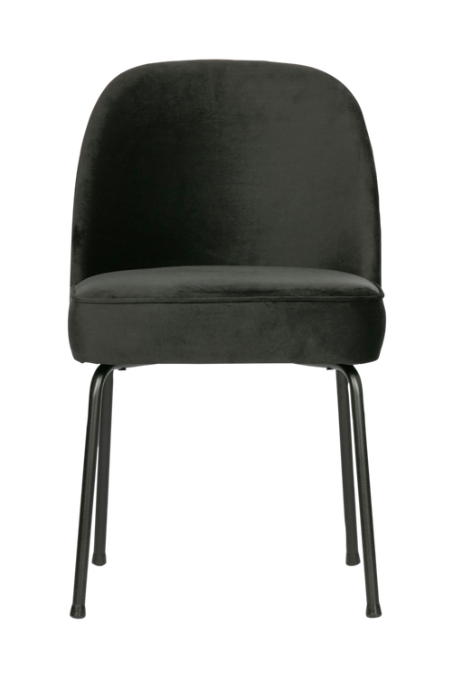 Ej tillgänglig i Storbritannien. Produkten är inte brandhämmande – Snygg och bekväm matsalsstol – Mjuka, behagliga former – Svart sammet (100% polyester) – H 83 cm x B 50 cm x D 57 cm Vogue matsalsstol ingår i en kollektion från det nederländska märket BePureHome. Matsalsstolen är superbekväm och det mjuka tyget och de behagligt rundade formerna gör denna eleganta stol till ett dekorativt inslag i en modern inredning. Den smala designen gör att stolen passar bra med de flesta inredningsstilar. Material Sammetstyget har ett lyxigt, matt utseende. Vår Voquar-sammet består av 100% polyester och är av hög kvalitet. Materialet är mycket lämpligt för intensiv användning (Martindale-värde 90 000). Förutom den snygga designen håller sig sammetstyget vackert under lång tid. Sammetstyget behåller färgen och noppar inte lätt. Tyget är, till mångas förvåning, ett väldigt lättskött tyg. Matsalsstolens stomme är tillverkad av matt, svart, pulverlackerad metall. Sitsens ram är tillverkad av en kombination av spånskiva och plywood. Sitsen innehåller elastiska remmar och skum T3542 som ger en något fast sits som håller i timmar. Ryggstödet är fyllt med skum T2120. Mått Vogue matsalsstol har en total höjd på 83 cm, en total bredd på 50 cm och ett djup på 57 cm. Sitthöjden är 50 cm och sittdjupet 45 cm. Sittbredden är 50 cm. De fyra benen har alla en höjd på 40 cm och diameter 2 cm. Skötsel Små fläckar tas enkelt bort genom att badda med en absorberande trasa. Större fläckar tas enkelt bort med ett milt rengöringsmedel och en mikrofiberduk. Om det behövs, använd en hårtork för att torka fläcken snabbare. Håll tillräckligt med avstånd så att tyget inte bränns. Efteråt kan tyget borstas med en sammetsborste. Denna borste är mycket bra för regelbundet underhåll. Impregnering rekommenderas inte. Om du vill impregnera produkten sker det på egen risk. Leverans Matsalsstolen levereras i par, i ett paket. Benen är enkla att montera själv med hjälp av medföljande monteringsanvisning. För att skydda hårda golv, sätt möbeltassar av filt under benen (2 cm i diameter). Detta förhindrar repor.
