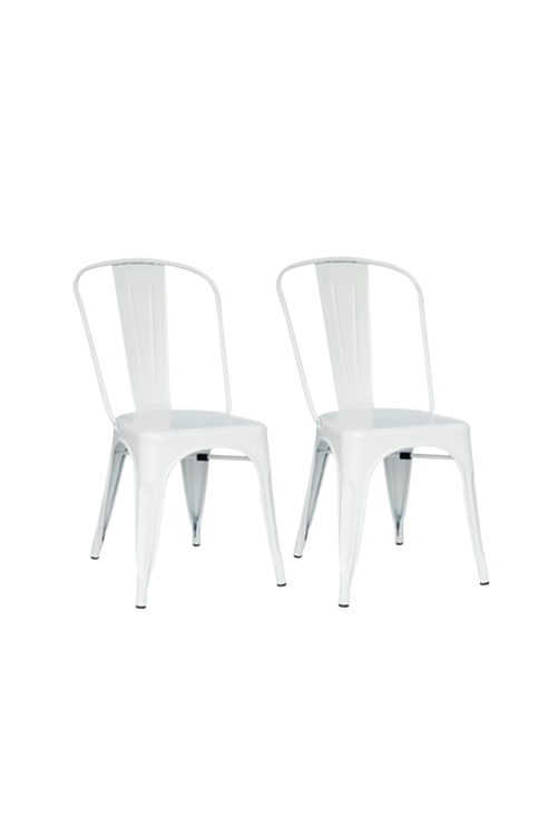 Denna fransk inspirerade klassiska stol i matt vit plåt, passar väl in i både det moderna eller rustika hemmet. Det är bara att sätta sig och njuta av stunden. Vi kan bara önska alla kunder en skön stund. OBS STOLARNA SÄLJES ENDAST 2 PACK Produktinformation. Höjd: 83 cm Bredd: 45 cm Djup: 52 cm Sits höjd: 44 cm Material: plåt Färg: matt vit