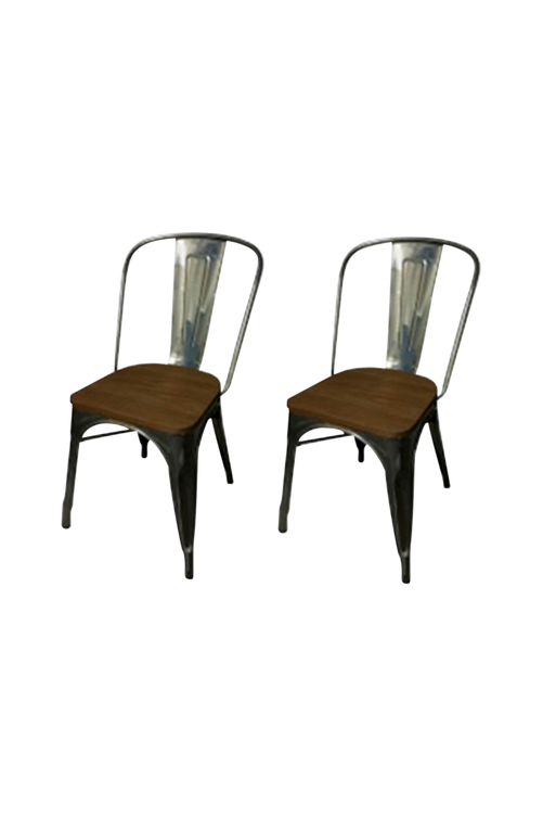 Denna fransk inspirerade klassiska stol i galvaniserad plåt med trä sits, passar väl in i både det moderna eller rustika hemmet. Det är bara att sätta sig och njuta av stunden. Vi kan bara önska alla kunder en skön stund. Rostfärgade fläckar kan förekomma och är ett naturligt inslag i galvaniseringsprocessen. OBS STOLARNA SÄLJES ENDAST 2 PACK Produktinformation. Höjd: 83 cm Bredd: 45 cm Djup: 52 cm Sits höjd: 44 cm Sits bredd: 37 cm Sits djup: 37 cm Material: plåt/trä (alm) Färg: galvaniserad/brun