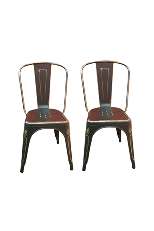 Denna fransk inspirerade klassiska stol i antik svart/guld plåt, passar väl in i både det moderna eller rustika hemmet. Det är bara att sätta sig och njuta av stunden. Vi kan bara önska alla kunder en skön stund. OBS STOLARNA SÄLJES ENDAST 2 PACK Produktinformation. Höjd: 83 cm Bredd: 45 cm Djup: 52 cm Sits höjd: 44 cm Material: plåt Färg: Antik svart/guld