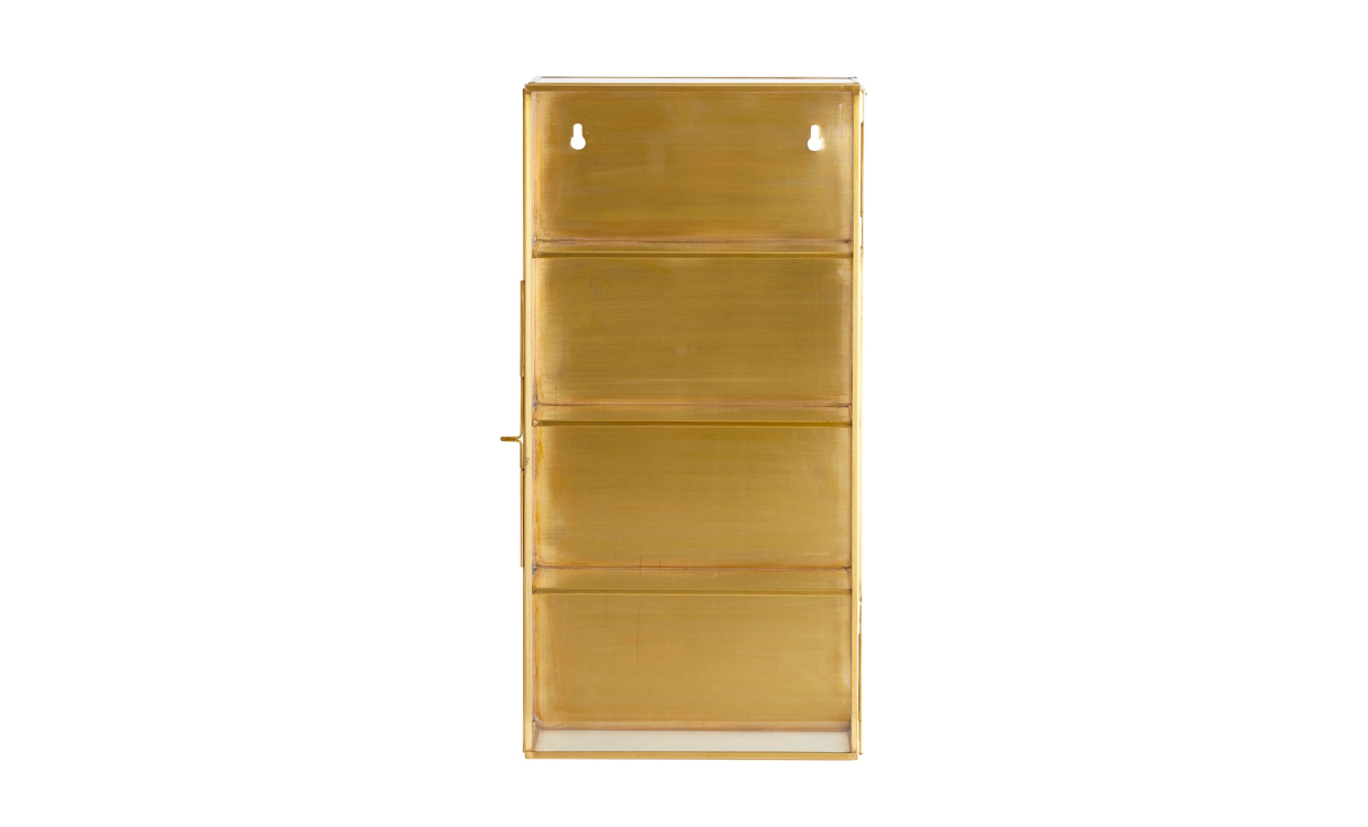 Ada ör ett vackert skåp som utstrålar en lyx och som bokstavligen sätter guldkant på vardagen. Skåpet är tillverkat i järn, glas och mässing och erbjuder förvaring på fyra hyllplan. Ada monteras enkelt på väggen via två synliga hål på skåpets baksida.Design & egenskaperVackert skåp med lyxig känsla.Tillverkad av järn, mässing och glas.Monteras på väggen.Leverans & förpackningLevereras monterad.Antal förpackningar: 1 stVikt: 2 kg.