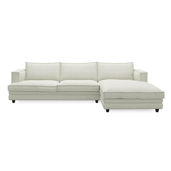 3 sits högervänd Soffa med schäslong, siddehøjde 43 cm. – Soil 1494-49 Steel tyg, ben i svart plast och Kallskum med fiberfyllning