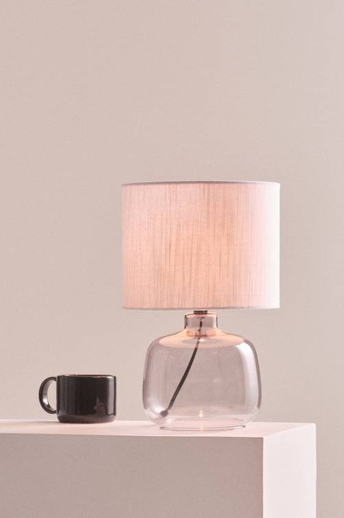 Bordslampa med fot av rökfärgat glas och skärm av linne. Foten är snyggt rund i formen och den svarta sladden som går genom foten blir en effektfull detalj. Den raka linneskärmen har metallstomme. ALASKA är avskalat stilren och utstrålar enkelhet. Material: Glas, linne och metall. Storlek: Total höjd 35,5 cm. Fot: ø 17,5 cm, höjd 17 cm. Skärm: ø 23 cm, höjd 18 cm. Sockel/lampa: 1 st E14, max 40 w. Ljuskälla medföljer ej. Tips/råd: Matcha lampskärmen med nya linnegardiner och hela rummet känns som nytt.