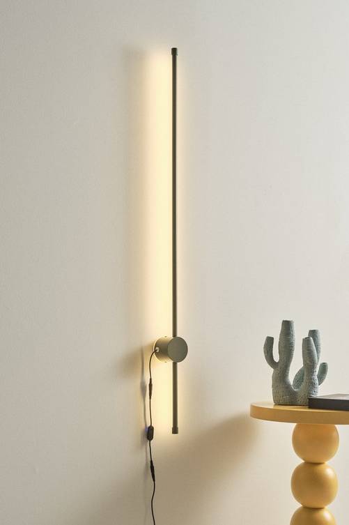 Vägglampa av aluminium och akrylglas i elegant, minimalistisk stil. LED-belysningen är integrerad, så du behöver inte tänka på att komplettera med ljuskälla. Dessutom har vägglampan integrerade dimmer som sitter på sladden. Akrylglaset är vitt och aluminiumdelarna har mattsvart finish. ALISO ger ett behagligt sken och med dimmer styr du styrkan exakt som du vill ha den. Material: Aluminium och akrylglas. Storlek: Höjd 120 cm, bredd 8 cm, djup 6 cm. Sockel/lampa: Integrerad LED 12 w. Färgtemperatur 3000 K. Ljuskällan är ej utbytbar.