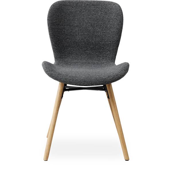 matstol, ej stapelbar, maxbelastning 110 kg och siddehøjde 48 cm. – Sits i 130 deep grey boucle st och ben i oljebehandlad ek