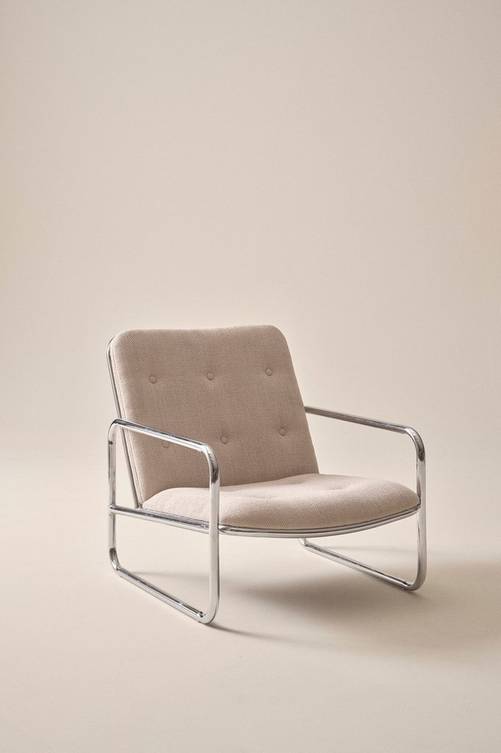 ALMELO loungestol är en lite lägre fåtölj med stomme av kraftiga, kromad järnrör. Sits och ryggstöd är mjukstoppade och klädda med slitstarkt tyg av polyester/akryl. ALMELO har skön retrokänsla med mixen av krom och kraftigt tyg, djuphäftade knappar och den sköna modellen. Du sitter lågt och behagligt i ALMELO. Viss montering krävs. Monteringsanvisning medföljer. Material: Järn, tyg av 90% polyester och 10% akryl. Storlek: Höjd 72 cm, bredd 65 cm, djup 87,5 cm, sitthöjd 30,5 cm. Maxvikt: 120 kg. Skötselråd: Fläckar torkas av med lätt fuktad trasa.