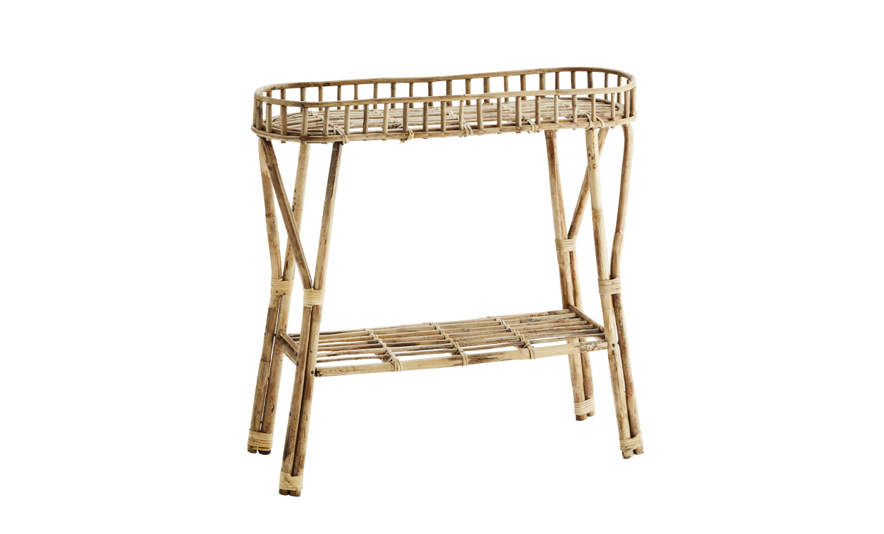 Denna härliga hylla från Madam Stoltz passar i de flesta delar av hemmet. Eftersom den är tillverkad i naturmaterialet bambu kan hyllan skilja sig i färg och form mellan varje produkt, varje hylla är unik i sitt eget slag. Hyllan har två plan för förvaring och dekoration.Design & egenskaperBohemisk hylla från Madam Stoltz.Två hyllplan för förvaring. Tillverkad i Bambu. Hyllan är 76 cm hög.