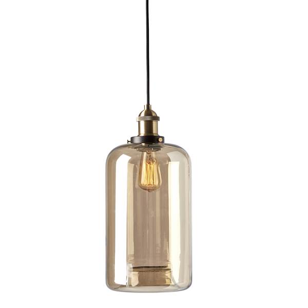 pendellampa (liten), max 40W, e27-sockel, exkl. glödlampa och 3 m sladd. – Bärnstensfärgad glasskärm och sockel i mässing