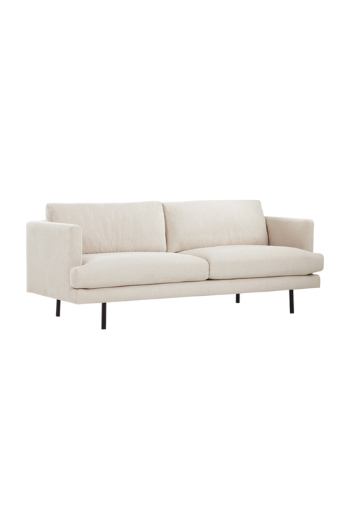 3-sits soffa med mjuk klädsel och cylinderformade ben i metall. En stilfull soffa där modern design möter 50-tals-nostalgi. ANTWERPEN har ett tidlöst uttryck som gör den lätt att placera. Soffan har en stabil stomme av furuträ och plywood med god sittkomfort tack vare sin fantastiska uppbyggnad av kallskum, zickzackfjädring, resårband samt den sköna stoppningen av fjäder och bollfiber. Ryggkuddarna har stoppning av fjäder och bollfiber som gör dem bekväma att luta sig mot. Material: Furuträ, polyester och metall. Storlek: Höjd 83 cm, bredd 213 cm, djup 87 cm, sitthöjd 49 cm, sittdjup 60 cm. Martindale: 30 000. Skötselråd: Dammsugning. Formgivare: Jotex Design Studio.