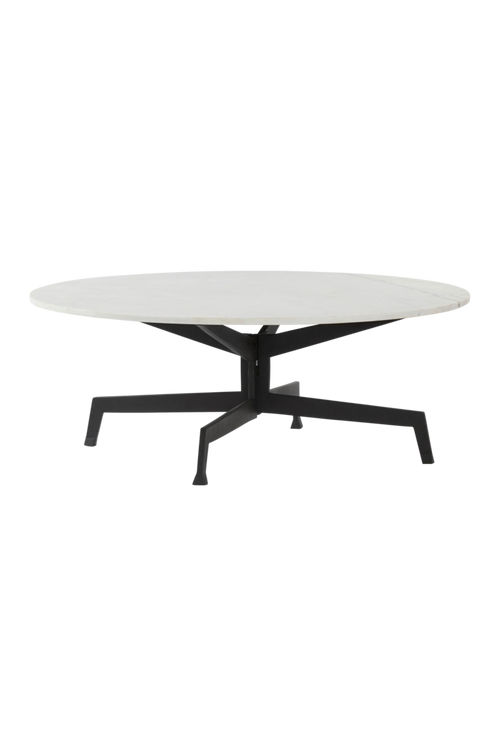 Runt soffbord med bordsskiva av marmor och underrede av järn med matt, svart yta. Marmor är klassiskt och med rätt skötsel bevarar du det fint länge. Underredet av järn är en snygg kontrast till bordsskivan både när det gäller den kantiga formen och det ruffa materialet, en snygg mix. Viss montering krävs. Material: Marmor och järn. Storlek: Höjd 35 cm, bordsskiva ø 90 cm. Skötselråd: Torkas av med lätt fuktad trasa. Torka omedelbart upp utspilld vätska på marmor. Använd alltid glasunderlägg. Undvik sura vätskor, såsom vin, citrus, vinäger etc. Undvik städmedel som inte är anpassade för marmor. För daglig rengöring använd såpvatten. Torka med en mjuk trasa eller handduk. Skydda din möbel regelbundet med marmorolja. Formgivning: Jotex Design Studio. Tips/råd: Bordstabletter är ett enkelt sätt att skydda ditt marmorbord. Vi har stort utbud och du kan matcha efter årstid och övriga rummet.