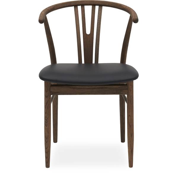 matstol, med armstöd, maxbelastning 100 kg och siddehøjde 45 cm. – Sits i svart läder och stomme i mörkt gråoljad ek