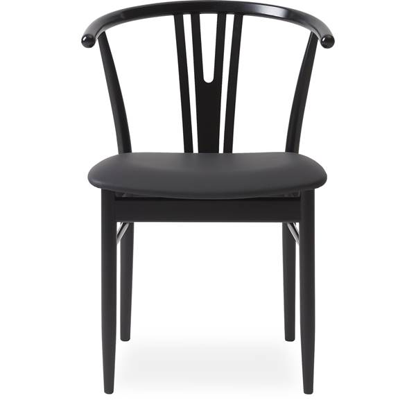 matstol, med armstöd, maxbelastning 100 kg och siddehøjde 45 cm. – Sits i svart läder och chassi i svartmålad bok