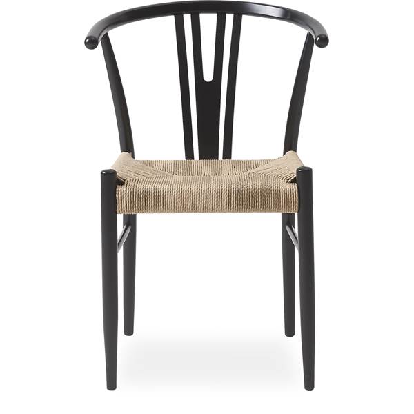 matstol, med armstöd, maxbelastning 100 kg och siddehøjde 45 cm. – Sits i naturfärgad rotting och chassi i svartmålad bok