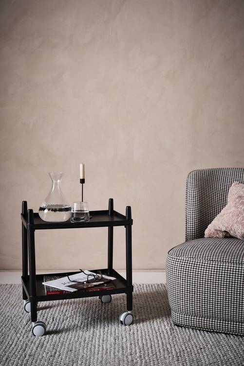 Serveringsvagn med två hyllplan av formgjuten polypropylen, träben av bok och hjul. Mångsidig möbel med flera användningsområden. Passar perfekt som soffbord eller att bygga ett stilleben på. Viss montering krävs. Monteringsanvisning medföljer. Material: Plast och trä. Storlek: Höjd 60 cm, bredd 50 cm, djup 36 cm. Skötselråd: Torkas av med lätt fuktad trasa. Tips/råd: En serveringsvagn lämpar sig bra som soffbord om du har en begränsad boyta. Lätt och att rulla fram och ta undan.