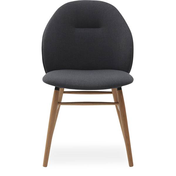 matstol, maxbelastning 120 kg och siddehøjde 48 cm. – Sits i Diva 40 mörkgrått tyg och ben i lackerad ek