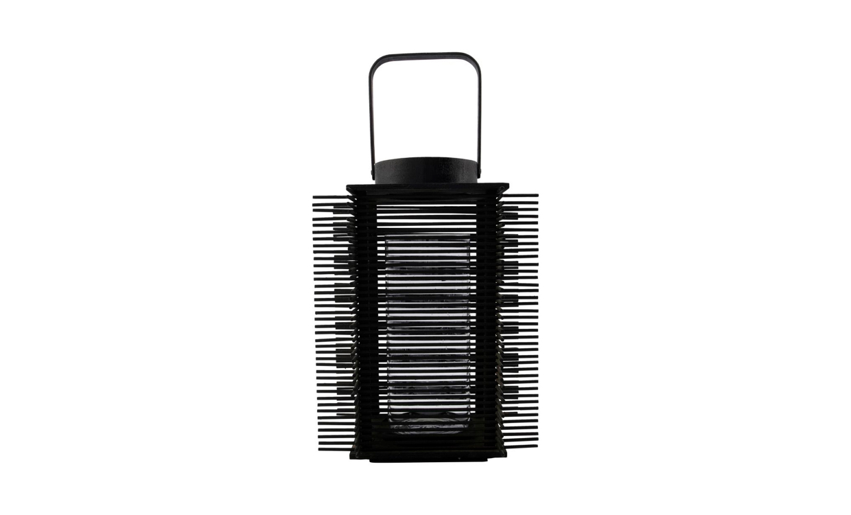 Asi är en vacker lykta som snabbt drar blickarna till sig. Med en höjd på 46 cm gör lyktan ett grandiost intryck och sprider en avkopplande känsla i rummet. Asi är tillverkad av bambu och har ett intressant mönster av pinnar där ljuset sprids elegant igenom.Design & egenskaperVacker lykta i unik design.Levereras med en glaskopp där ett ljus kan placeras.Tillverkad av bambu, glas och metall.