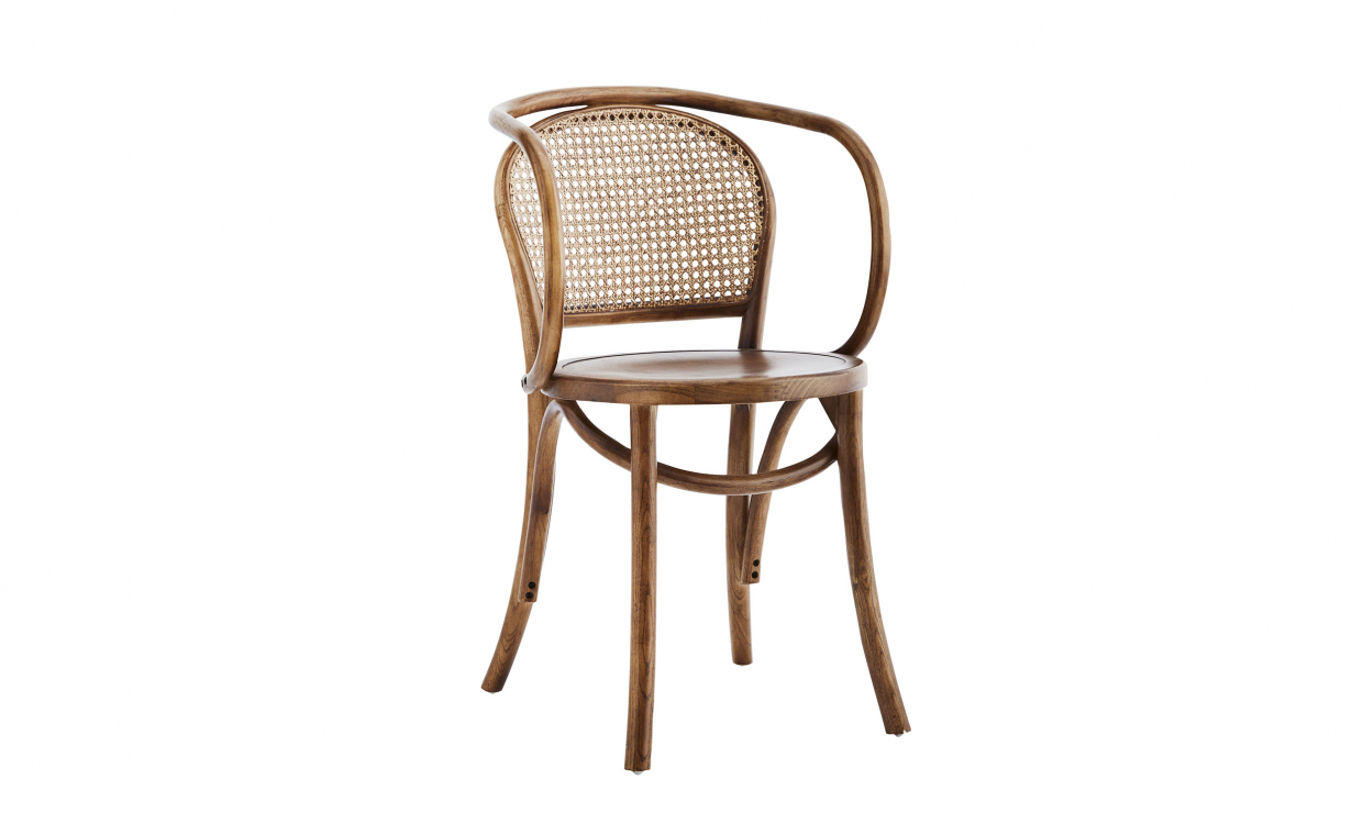 Aubin är en vacker stol i unik design. Den är tillverkad i almträ och rotting och präglas av mjuka, rundade linjer som är formade på ett nytänkande sätt. Dess komfort ökas även av det intressanta armstödet som sammankopplas över ryggen.Design & egenskaperVacker stol i unik design.Tillverkad i almträ och rotting.Då stolen är tillverkad i naturmaterial kan utseende och textur variera något.Sitthöjd: 46 cm.