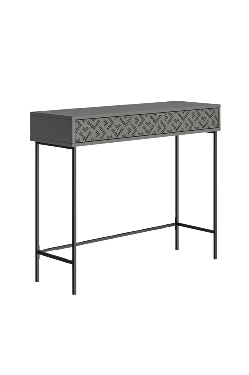 100% SPÅNSKIVA MED MELAMINBELÄGGNING Tjocklek: 1,8 cm Ben av metall Bredd: 110 cm Höjd: 90 cm Djup: 35,5 cm Benens höjd: 74,5 cm Maximal belastning: 25 kg