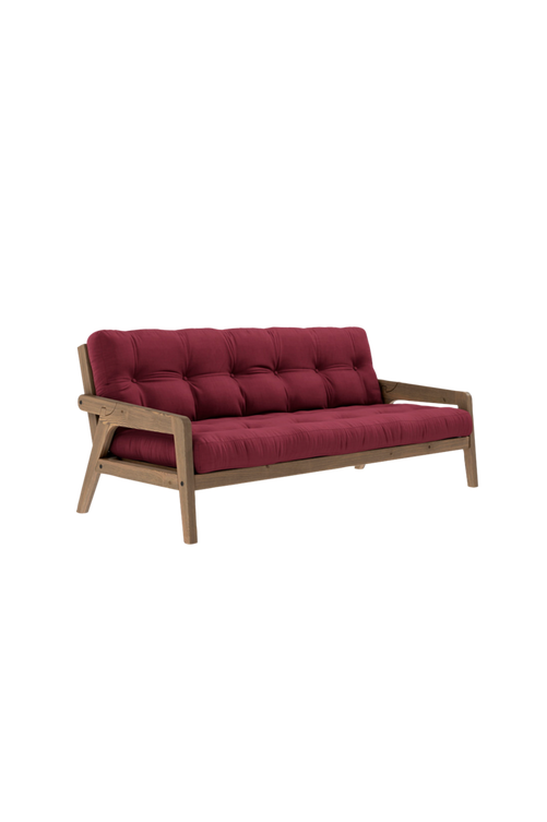 Dela . Omvandla . Grab bäddsoffa är gjord för att dela. Både som soffa och som dubbelsäng när den är utfälld. Armstöden är designade för att enkelt kunna omvandlas och fungera som dubbelsängens bakben genom att vända den – vilket är den enklaste förvandlingen från soffa till säng hittills. En bekväm futonmadrass ingår. Designad av Says Who för Karup Design.