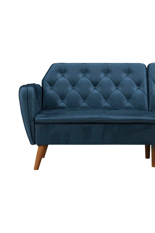 Tallulah bäddsoffa med memoryskum från Novogratz är precis vad du behöver och mer! Vintageinspirerad design som ger ditt hem elegans och sofistikation med runda former och djuphäftade knappar. Möbeln är designad med en mjuk sammetsklädsel och är både kompakt och multifunktionell. Tallulah bäddsoffa med memoryskum är tillverkad med en robust stomme av trä och är designad för att ge överlägsen komfort! Sittdynorna är fyllda med högdensitetsskum och responsivt memoryskum som vaggar din kropp för att hjälpa till att lindra tryckpunkter medan du tittar på tv eller tar en välbehövlig tupplur på eftermiddagen. Ryggstödet har en delad design och kan lutas tillbaka för att växla mellan flera lägen: sittande, vilande och sovande ställning. Det betyder med andra ord att du nu har en extrasäng för övernattande gäster! Tallulah bäddsoffa med memoryskum finns i flera färger och har utställda ben av trä som ger en elegant känsla!