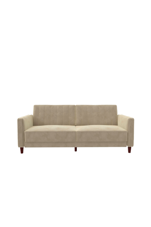 Ingenting säger klass, elegans och smidig komfort som sammet och Pin tuftade bäddsoffa har den ultimata stilen! Designen i sig är fantastisk. Den kombinerar tjock dämpning med tuftad sammet, eleganta armstöd, avsmalnande ben av trä och en vintagestil som tar dig tillbaka till 1950-talets fantastiska, lyxiga dagar. Den finns i många olika färger som matchar din inredning och passar perfekt i ett modernt, klassiskt eller ett mer rustikt vardagsrum. Dessutom kan det delade ryggstödet sänkas individuellt till vilande eller sovande ställning så att du kan sitta upp och titta på din favoritfilm, slappna av och diskutera med vänner eller erbjuda övernattande gäster en bekväm sovplats. Den tuftade bäddsoffan Pin har mjuk vaddering under alla fyra benen för att göra den lätt att flytta omkring och se till att dina golv inte blir skavda eller repade.