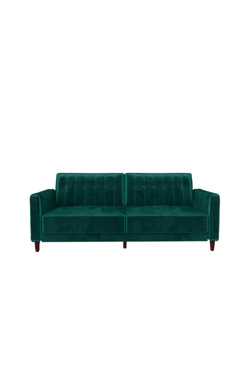 Ingenting säger klass, elegans och smidig komfort som sammet och Pin tuftade bäddsoffa har den ultimata stilen! Designen i sig är fantastisk. Den kombinerar tjock dämpning med tuftad sammet, eleganta armstöd, avsmalnande ben av trä och en vintagestil som tar dig tillbaka till 1950-talets fantastiska, lyxiga dagar. Den finns i många olika färger som matchar din inredning och passar perfekt i ett modernt, klassiskt eller ett mer rustikt vardagsrum. Dessutom kan det delade ryggstödet sänkas individuellt till vilande eller sovande ställning så att du kan sitta upp och titta på din favoritfilm, slappna av och diskutera med vänner eller erbjuda övernattande gäster en bekväm sovplats. Den tuftade bäddsoffan Pin har mjuk vaddering under alla fyra benen för att göra den lätt att flytta omkring och se till att dina golv inte blir skavda eller repade.