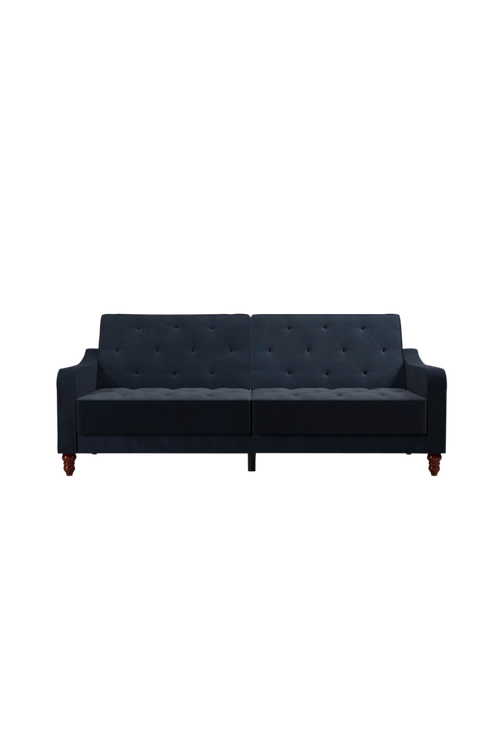Den tuftade bäddsoffan Vintage från Novogratz med delat ryggstöd är det bästa sättet att ge ditt hem en fantastisk stil! Denna soffa gör faktiskt allt för dig. Tillverkad med en robust stomme av trä, i en elegant design med djärva färger som garanterat ger ett stort intryck. Funktionen med delat ryggstöd är fantastisk: ryggstödet kan lutas tillbaka i flera oberoende positioner, vilket gör att du kan sitta, slappa och till och med sova! Den är klädd i mjuk sammet med sits, dynor och armstöd med tuftat diamantmönster och benen i viktoriansk stil ger en komplett stil. Kombinera med den tuftade fåtöljen eller ottomanen Vintage från Novogratz för att få en enhetlig stil och låt det roliga börja!