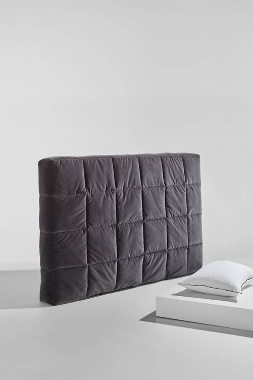 Ett överdrag i sammet, som du trär över din sänggavel. Sammetstyget är quiltat i stora rutor, 30×30 cm. Sammet är ett livfullt tyg där ljuset gör att tyget skiftar i olika nyanser. Tyget har ett terylenfoder som gör sänggaveln mjukare och den quiltade effekten förstärks. Detta överdrag passar en sänggavel som är 180 cm bred och ger en bred sammetsvägg bakom din säng. Basil mixar retro med det senaste och färgskalan är oslagbar. Överdraget Basil är framtaget tillsammans med sänggaveln med samma namn, och du kan också förnya din befintliga sänggavel på ett enkelt sätt. – Material: Bomullssammet (89.1% Bomull, 10.9% polyester). Foder av 100% terylen – Skötselråd: Dammsugning. – Storlek: Bredd 180 cm, höjd 120 cm, djup 20 cm