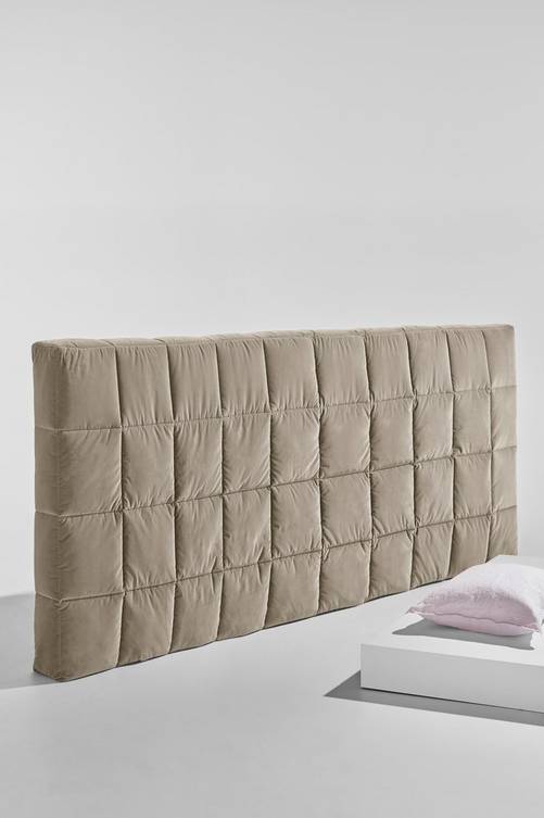Ett överdrag i sammet, som du trär över sänggaveln. Sammetstyget är quiltat i stora rutor, 30×30 cm. Sammet är ett livfullt tyg där ljuset gör att tyget skiftar i olika nyanser. Tyget har ett terylenfoder som gör sänggaveln mjukare och den quiltade effekten förstärks. Detta överdrag passar en sänggavel som är 300 cm bred och ger en bred sammetsvägg bakom din säng. Basil mixar retro med det senaste och färgskalan är oslagbar. Överdraget Basil är framtaget tillsammans med sänggaveln med samma namn. – Material: Bomullssammet (89.1% Bomull, 10.9% polyester). Foder av 100% terylen – Skötselråd: Dammsugning. – Storlek: Bredd 240 cm, höjd 120 cm, djup 20 cm