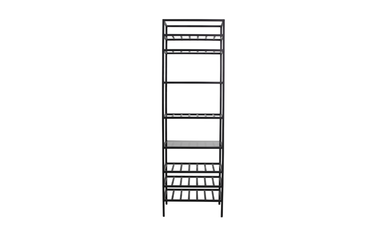 Ett vinställe är den perfekta möbeln för att ge vardagen lyx, samtidigt som den agerar som praktisk förvaring. Detta vinställ är tillverkat i järn och ger plats åt minst 42 vinflaskor. Stället har två svarta hyllplan i glas som kan flyttas och placeras på önskad plats.Design & egenskaperStilrent vinställ som ger plats åt minst 42 flaskor.Har två hyllplan i glas som kan placeras på önskad plats.Tillverkad i järn och glas.Leverans & förpackningLevereras monterad.Antal förpackningar: 1 stFörpackningsmått: 191x63x50 cmVikt: 32 kg
