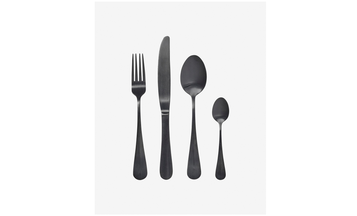 Med detta snygga set med bestick ger du genast nytt liv till din bordsdukning. Setet innehåller en gaffel, en kniv, en matsked samt en tesked, allt du behöver för olika tillfällen. Bestick är ergonomiskt utformade och tillverkad av rostfritt stål som sedan polerats för att ge en lyxigare känsla. En tidlös uppsättning med bestick som fungerar lika bra till vardags som till fest. Design & egenskaperModerna och eleganta bestick.Har höjderna 21/24/21/14 cm.Uppsättning med 4 bestick.Material & skötsel Tillverkade i rostfritt stål. Bör ej diskas i maskin.