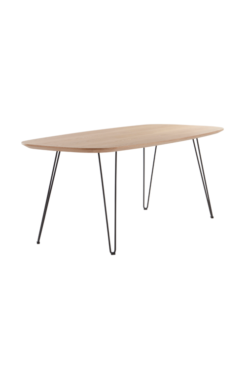 Rektangulärt bord i stilren design. Natur och svart bord har bordsskiva i askfanér med fin ådring och svartlackerade järnben. Det vita bordet har bordsskiva i lackerad MDF och kromade ben av rostrfritt stål. De snyggt formade metallbenen tillsammans med bordsskivans form ger bordet en svävande och nätt känsla trots att det är rejält i storleken. Viss montering krävs. Monteringsanvisning medföljer. Skruvar medföljer. Material: Bordsskiva av fanér eller MDF. Ben av järn eller rostfritt stål. Storlek: Höjd 75 cm, bordsskiva 90×200 cm. Maxbelastning: 80 kg. Skötselråd: Torkas av med lätt fuktad trasa.
