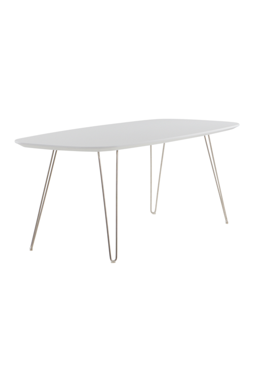 Rektangulärt bord i stilren design. Natur och svart bord har bordsskiva i askfanér med fin ådring och svartlackerade järnben. Det vita bordet har bordsskiva i lackerad MDF och kromade ben av rostrfritt stål. De snyggt formade metallbenen tillsammans med bordsskivans form ger bordet en svävande och nätt känsla trots att det är rejält i storleken. Viss montering krävs. Monteringsanvisning medföljer. Skruvar medföljer. Material: Bordsskiva av fanér eller MDF. Ben av järn eller rostfritt stål. Storlek: Höjd 75 cm, bordsskiva 90×200 cm. Maxbelastning: 80 kg. Skötselråd: Torkas av med lätt fuktad trasa.