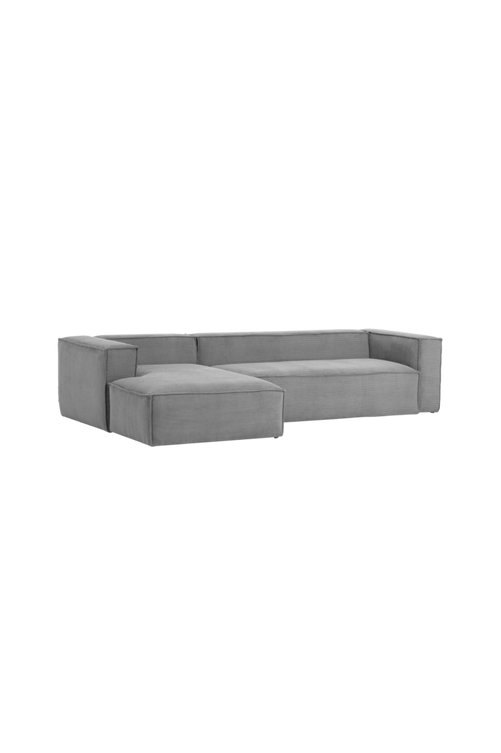 Rymlig soffa med divan där enkelheten och den rena designen ger en tidlös känsla. BLOK är designad för att passa in överallt och har en stomme av tall och spånskiva. Soffan har god sittkomfort tack vare sin fantastiska uppbyggnad av två lager kallskum, ett fastare lager som gör sitsen mer stabil och ett tunnare och mjukare lager som gör soffan mer bekväm. Mjukt sammetsliknande manchestertyg. Tyget är behandlat med ett anti-fläck skydd, vilket gör tyget väldigt lätt att torka av. Tyget ej behandlat med flammskydd. Material: Trä och textil. Storlek: Höjd 69 cm, bredd 330 cm, djup 174 cm, sitthöjd 41 cm, sittdjup 70 cm. Skötselråd: Dammsugning.