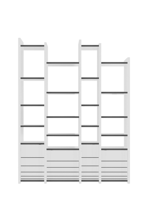 100% SPÅNSKIVA MED MELAMINBELÄGGNING Tjocklek: 18 mm Bredd: 127 cm Höjd: 165 cm Djup: 27 cm Flera hyllplan Kan fästas i väggen