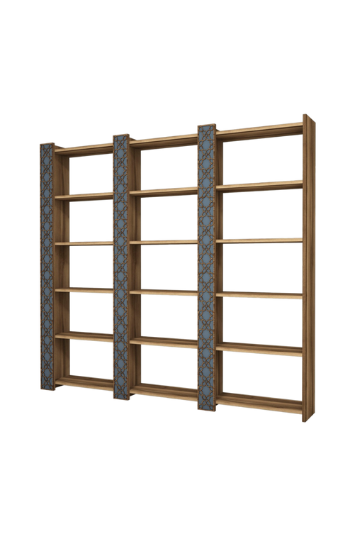 100% SPÅNSKIVA MED MELAMINBELÄGGNING Tjocklek: 1,8 cm 4 mm CNC Relief Ben av plast Bredd: 184,6 cm Höjd: 170 cm Djup: 24,2 cm Flera hyllplan Kan fästas i väggen