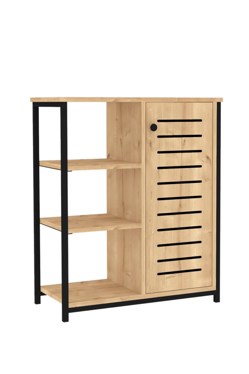 100% SPÅNSKIVA MED MELAMINBELÄGGNING Tjocklek: 1,8 cm Stomme: 100% METALL Bredd: 72 cm Höjd: 83,7 cm Djup: 34 cm