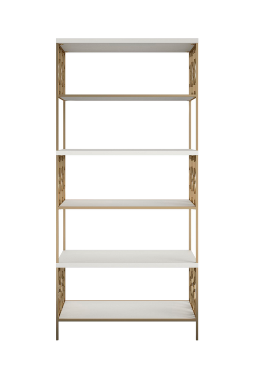 Här har du Ella Five Shelf Bookcase från CosmoLiving by Cosmopolitan. Raka linjer och moderna guldfärgade metallben skapar en exklusiv design som är perfekt för en fashionista. Möbeln har fem hyllor som gott och väl rymmer dina saker. Ett kit för att fästa möbeln säkert i väggen medföljer. Den här platsbesparande bokhyllan finns i färgerna krispig vit och vit marmor.