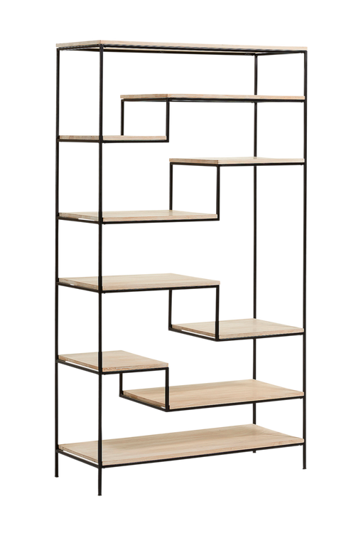Bokhylla med stomme av metall och hyllor av naturfärgat mangoträ. Höjd 180 cm Bredd 100 cm Djup 40 cm