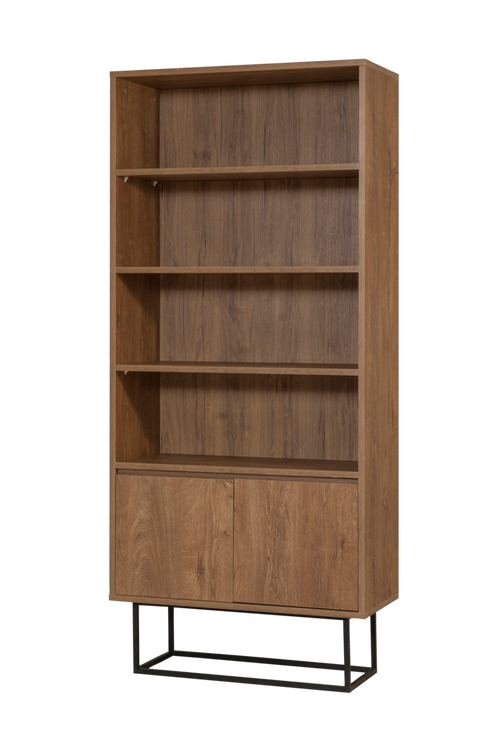 100% SPÅNSKIVA MED MELAMINBELÄGGNING Tjocklek: 1,8 cm Ben av metall Mått: Bredd: 80 cm Höjd: 182 cm Djup: 36 cm Hyllans höjd: 28 cm Flera hyllplan Kan fästas i väggen Extra förvaringsutrymme