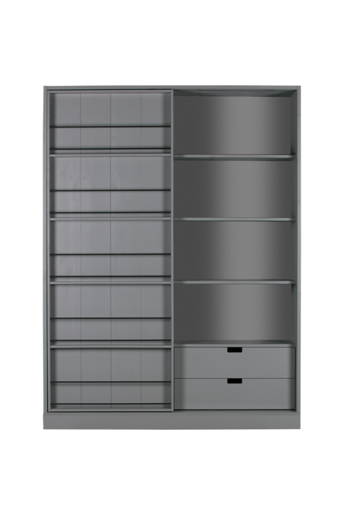 Detta skåp har en skjutdörr och ett öppet område. Skåpet har också två lådor med gott om lagringsutrymme. Det svängbara skjutdörrskåpet är tillverkat av massivt FSC-certifierat tallträ som är slipat och färdigbehandlat. Skåpet har en höjd på 200 cm, en bredd på 150 cm och ett djup på 47 cm. Skjutdörrskåpet levereras omonterat men är lätt att montera med de medföljande monteringsanvisningarna.