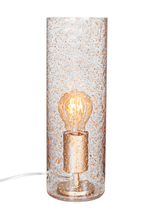 Denna vackra bordslampa är den lägre modellen av Golden bordslampa med en totalhöjd på 30 centimeter och en diameter om 10 centimeter. Med sin nätta uppsyn passar Golden i de flesta utrymmen och är exempelvis perfekt att sätta i en smalare fönsterkarm. Bordslampan ett vackert amberfärgat glas med spräcklig yta vilket ger ett vackert intryck. Lampfoten och detaljerna till lampan är i en estetiskt mattguldig färg. Till lampan behöver du en ljuskälla med sockel E27 med en omkrets på max 40 mm för att få plats i den nätta lampan. Vi rekommenderar en ljuskälla i färgen amber för vackrasts sken. Ljuskälla ingår ej. Sladden till Golden bordslampa är 200 centimeter lång och strömbrytaren sitter på kabeln.