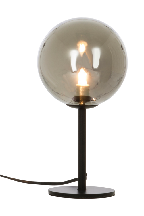Bordslampa i metall och glas. Ljusströmbrytare på sladden. Ljuskälla ingår inte.
