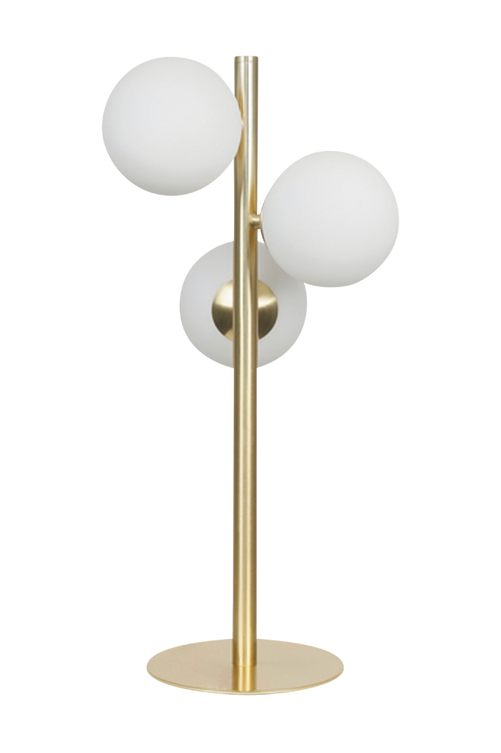 Bordslampa i metall och glas. Ljusströmbrytare på sladden. Ljuskälla ingår inte.
