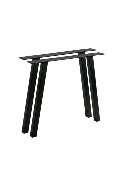 Två bordsben i modern stil Tillverkade av metall med mattsvart pulverlackering Ingår i WOOODs kollektion Tablo (2x) H 72 cm x B 79 cm x D 10 cm Skapa din perfekta matplats med delar från kollektionen Tablo från det nederländska inredningsmärket WOOOD. Tablo har många kombinationsmöjligheter och finns i olika storlekar, så att du kan skapa en matplats som passar just dig. Välj till exempel dessa smala A-formade ben, som säljs i par, för en luftig och stilren känsla. Material Metallen i våra kollektioner har olika ytbehandlingar, som pulverlackering och mässing/antik mässing. En pulverlackering ger ett lyxigt, matt utseende och skyddar metallen under produktens hela livslängd. Pulverlack är ett lack som binds till metallen med hjälp av höga temperaturer. Mått – Höjd: 72 cm – Bredd: 79 cm – Djup: 10 cm – Stomme: 5 x 5 cm – Vikt: 9 kg – Maximal belastning: 150 kg Skötsel All metall i kollektionen är noggrant behandlad och behöver därför inte behandlas på nytt. Om metallen skadas, kontakta en specialiserad lackerare. Behandlad metall är lätt att rengöra med en lätt fuktad trasa och ett milt rengöringsmedel. Torka av ytan efteråt, för att undvika märken. Leverans Tablo bordsben levereras i par, i ett paket. Benen monteras med hjälp av den bifogade monteringsanvisningen.