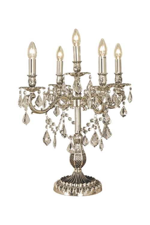 Allington bordslampa i färg antiksilver. Lampans huvudmaterial är metall. 5 x E14 sockel för ljuskälla med 5 x 40W max wattstyrka. Ljuskällor medföljer inte. Lampan tänds och släcks med strömbrytare på sladd. Lampan ansluts til ström med stickpropp. IP-klassificeringen på armaturen är IP20