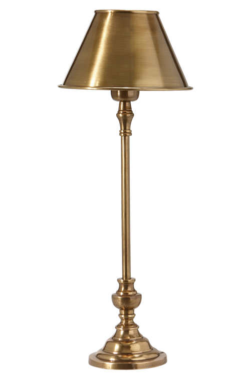 Lampfot i metall. Höjd 43 cm, bredd 12 cm. E27, max 40 w. 1,8m. Sladd med strömbrytare. Skärm Classic krom, diameter 19/10 cm, höjd 11 cm. Exklusive metallskärm. Total höjd 51 cm.