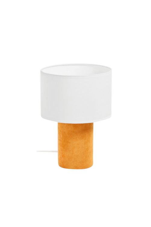 Ge ditt sovrum lite extra ljus och design. Lampan Bianella med lampskärm av tyg och manchesterklädd fot.