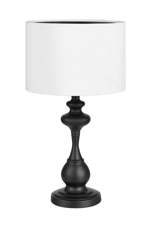 Connor bordslampa från Markslöjd. Fot i metall med skärm i sammet. Höjd 44,5 cm, 24 cm i diameter. 2 m svart textilklädd sladd med strömbrytare. Stor lamphållare (E27). Max 60W glödlampa eller motsvarande styrka i halogen, lågenergi eller LED. Ljuskälla medföljer ej.